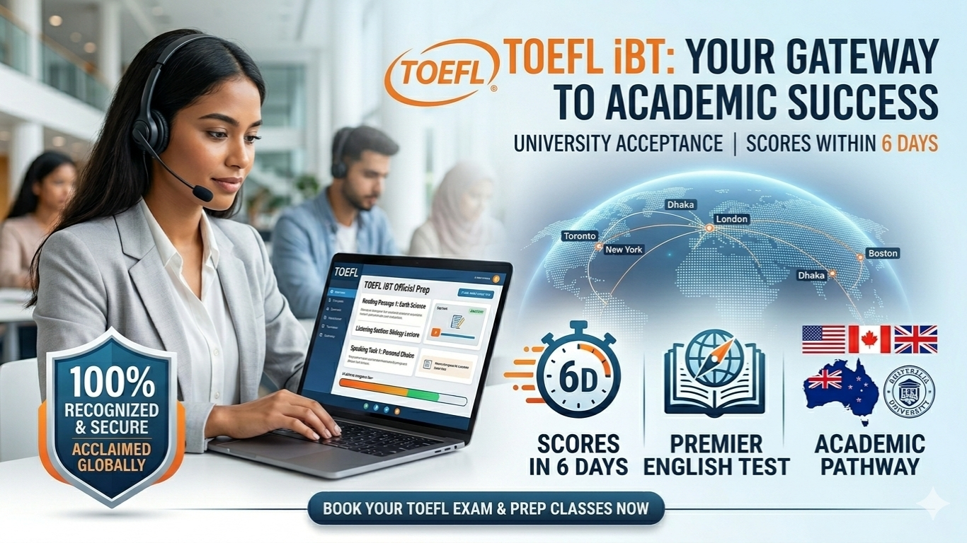 The TOEFL iBT (Test of English as a Foreign Language) is one of the most respected English-language proficiency tests in the world, recognized by more than 12,000 universities and institutions in over 160 countries. Whether you are aiming for prestigious universities in the USA, Canada, Australia, or the UK, a high TOEFL score is a vital component of your academic portfolio. At E-Planet, we provide specialized training to help you master the nuances of the academic English required for this exam.